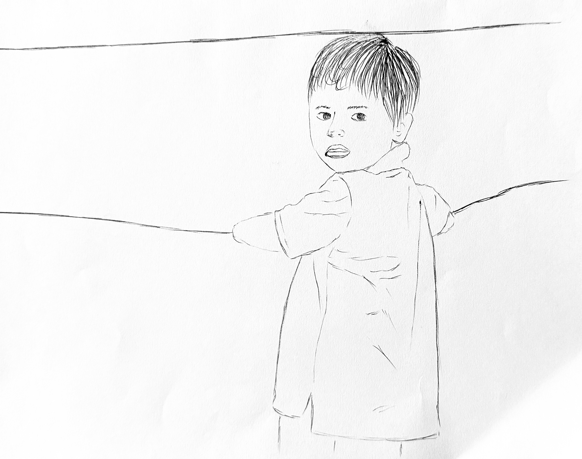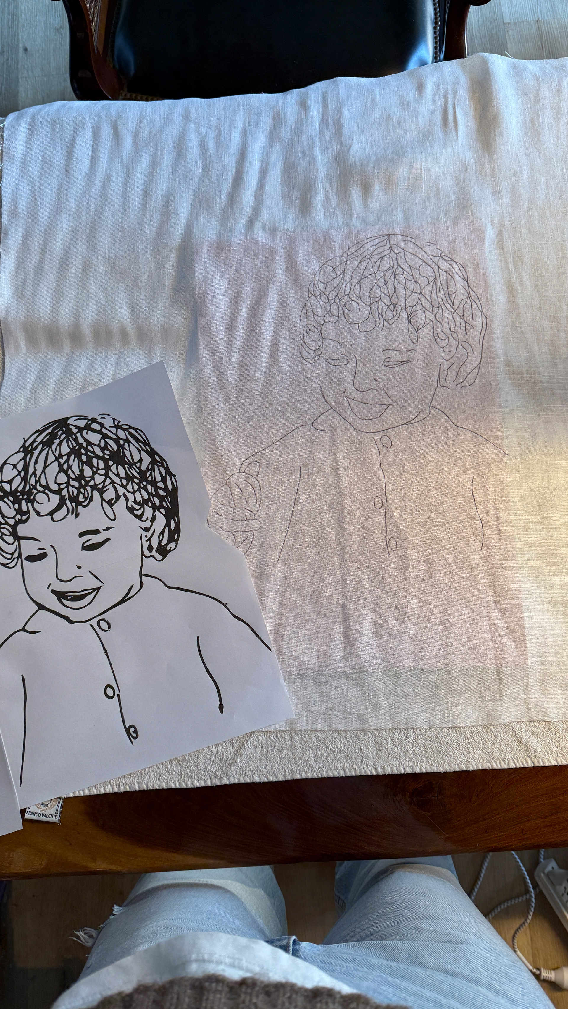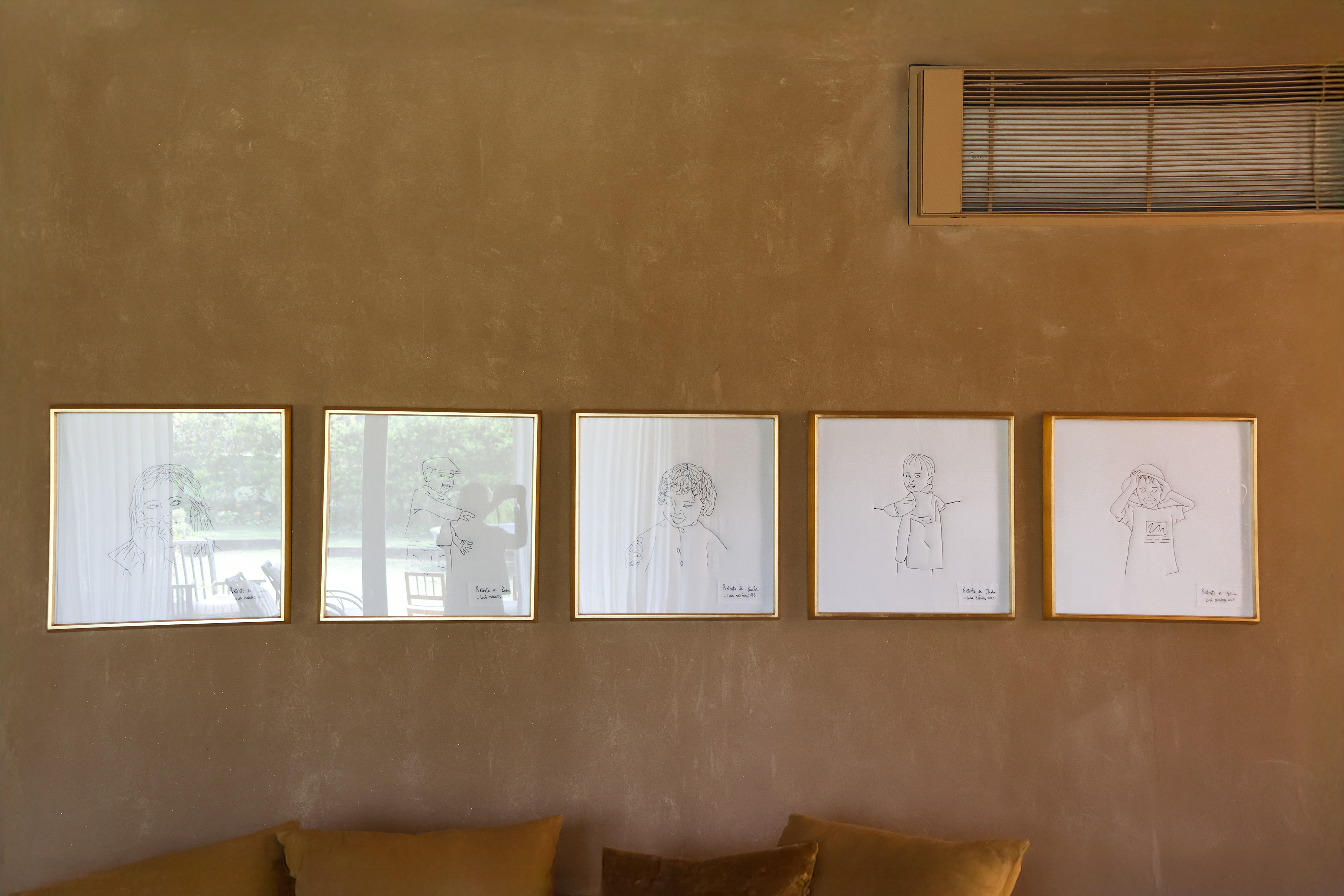 Serie de cinco obras textiles que representan a mis hermanos y a mí en nuestra niñez. El proceso comenzó a partir de fotografías familiares, que luego convertí en ilustraciones digitales en Illustrator. De allí tracé los contornos sobre lino, reforzado con guata para lograr un efecto acolchado, y finalmente cosí cada retrato a máquina. Las piezas fueron enmarcadas en El Taller, dando como resultado una serie íntima y artesanal que une memoria, diseño digital y trabajo manual.